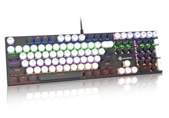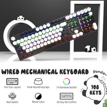 Teclado mecânico retrô com fio estilo máquina de escrever, teclado Steampunk vintage com retroiluminação arco-íris, interruptor vermelho de 104 teclas com teclado numérico, teclas redondas para