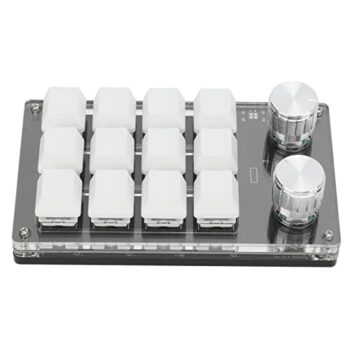 Teclado mecânico macro de uma mão, teclado mecânico portátil multifuncional de uma mão com 12 teclas e botões totalmente programáveis, para Windows, para Linux, para Vista, para OS X (branco)