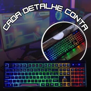 Teclado Gamer Led RGB Retroiluminado Com Fio Membrana Tecla tipo Chocolate Compativel com Windows Mac OS Linux