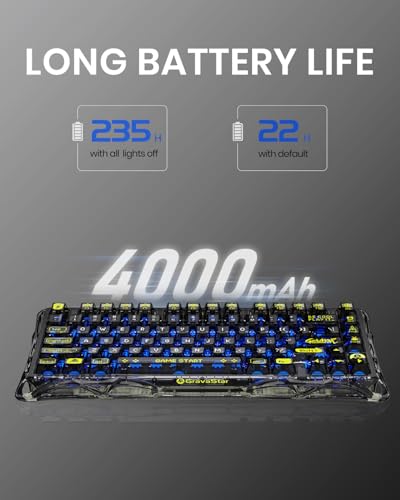 – ⌨Reliable Battery Life: Featuring a lightweight 4000mAh lithium-ion battery, the GravaStar Wireless Keyboard stores enough power that you might even forget it needs charging. With up to 235 hours between charges*, it can keep up with the longest marathon gaming sessions, anywhere they may take you. When it finally does need a charge, connect the included USB-C cable to replenish your power without interrupting your game.