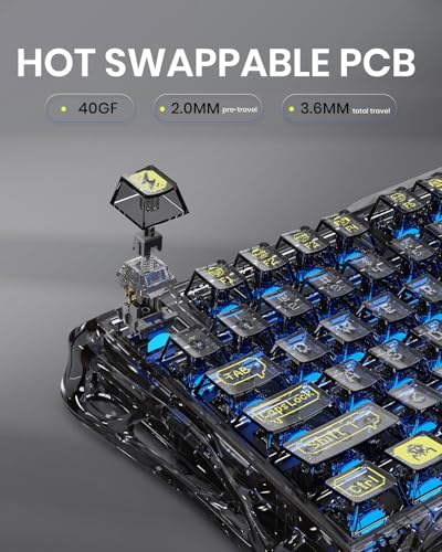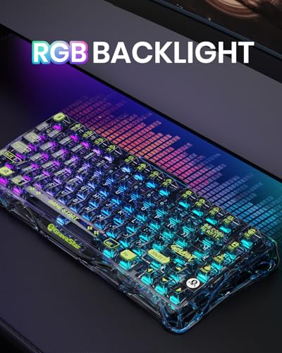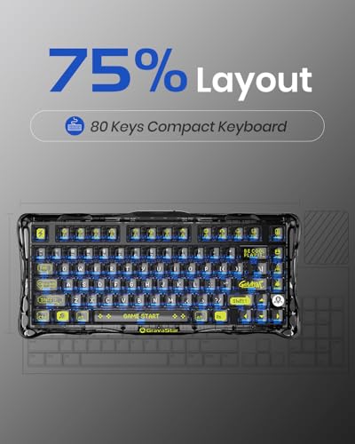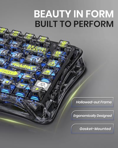 – ⌨Stylish and Unique Design: The GravaStar Mechanical Keyboard features a hollow and skeletal design that breaks away from traditional keyboard aesthetics, making it a standout piece on any desk. Constructed from durable PVC material, the transparent frame and keycaps maximize the cool backlight RGB effects and wear-resistant appearance.