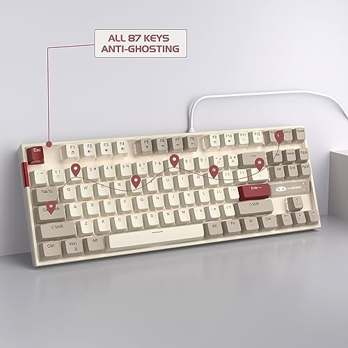 [Teclado anti-ghosting completo]: todas as 87 teclas não são conflitos, permitem que várias teclas funcionem simultaneamente com alta velocidade para uma conexão confiável, têm 12 teclados multimídia, ótimo para jogadores, digitadores, programadores, escritores etc.