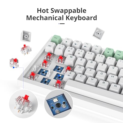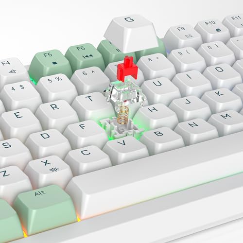 ★ 【Interruptor vermelho linear mecânico】: Caracterizado por ser linear e mais suave, o leve som das teclas não tem sentido de parágrafo com resistência mínima, mas ação rápida sem uma sensação de batida tátil, o que facilita tocar no teclado.