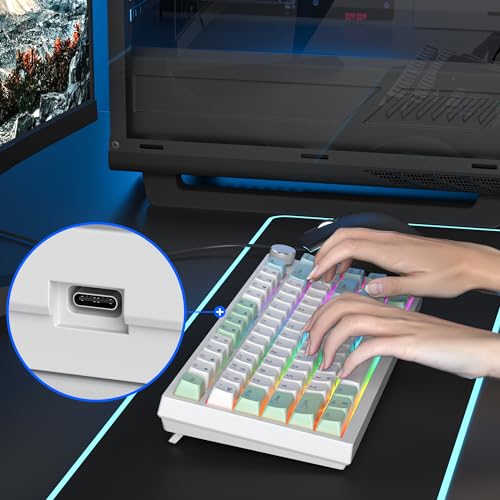 – ★ 【Design montado na junta】: este teclado usa uma estrutura de montagem de junta para reduzir a ressonância sonora enquanto adiciona mais flexibilidade de digitação. Junto com a espuma absorvente de som e a espuma da capa, oferece uma experiência de digitação mais silenciosa e suave.